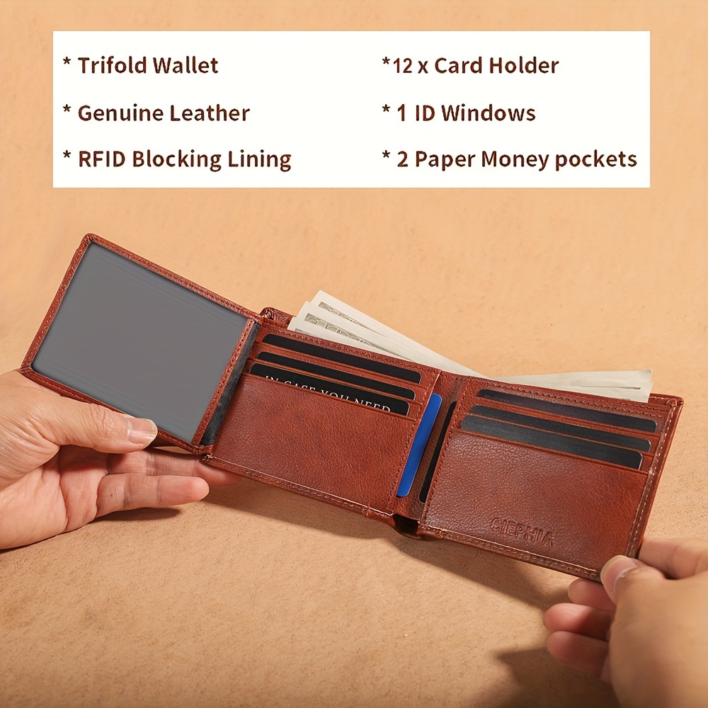 シフィアのメンズレトロフルグレインレザーRFIDブロッキング三つ折り財布、複数のカードスロット付き - 男性へのギフトに最適